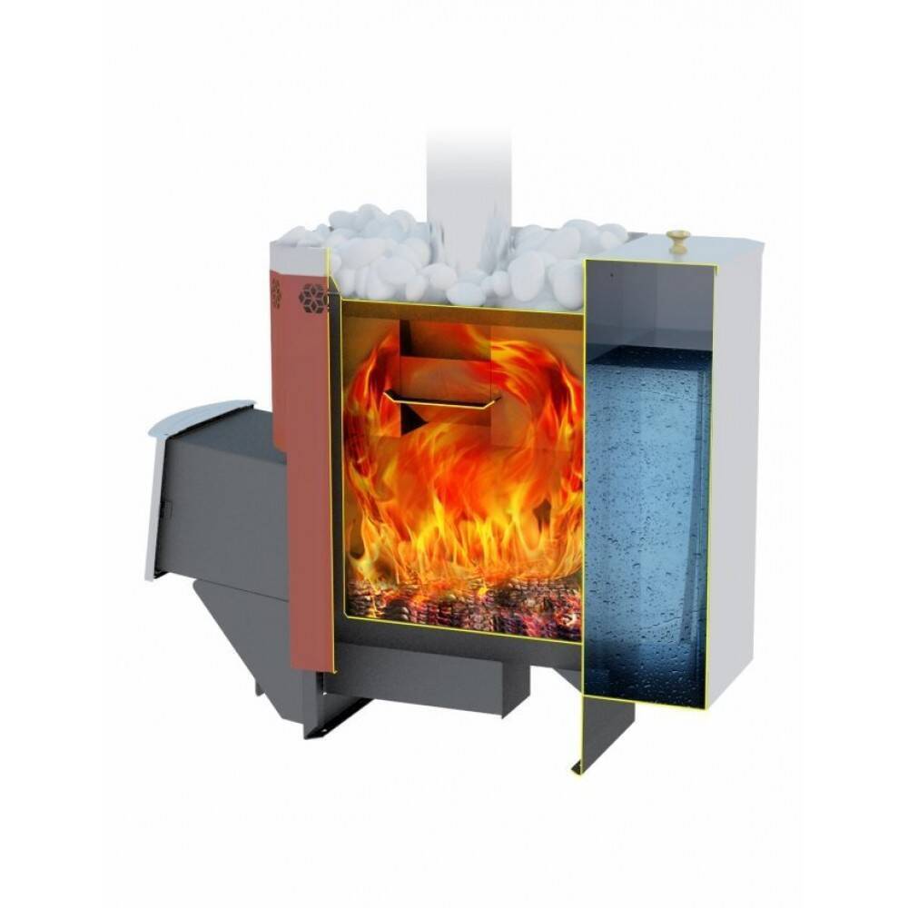 В режиме интенсивного горения печь за 30-50 минут может прогреть парную до