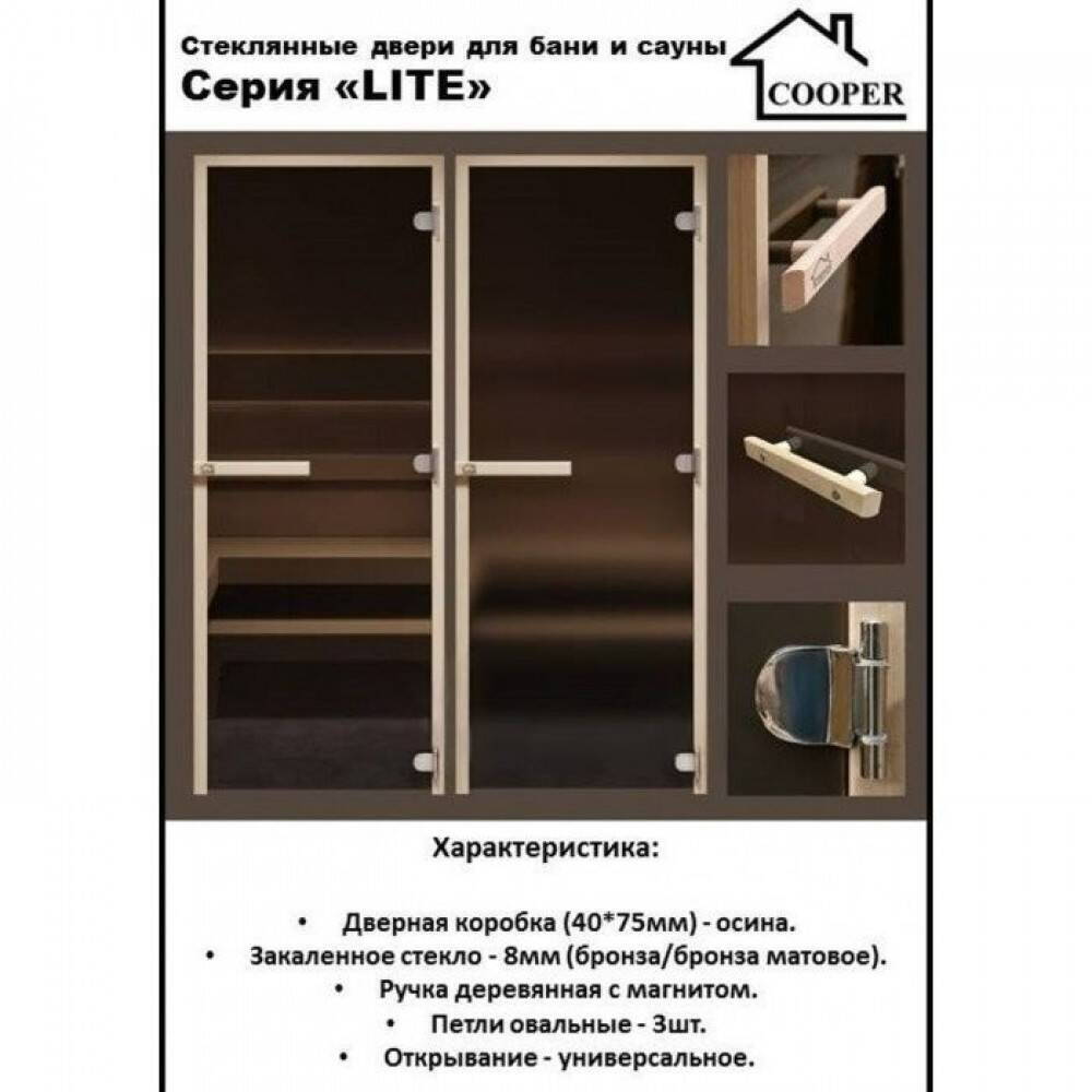 - Модель: Дверь стеклянная для бани 190*70 Бронза COOPER LITE