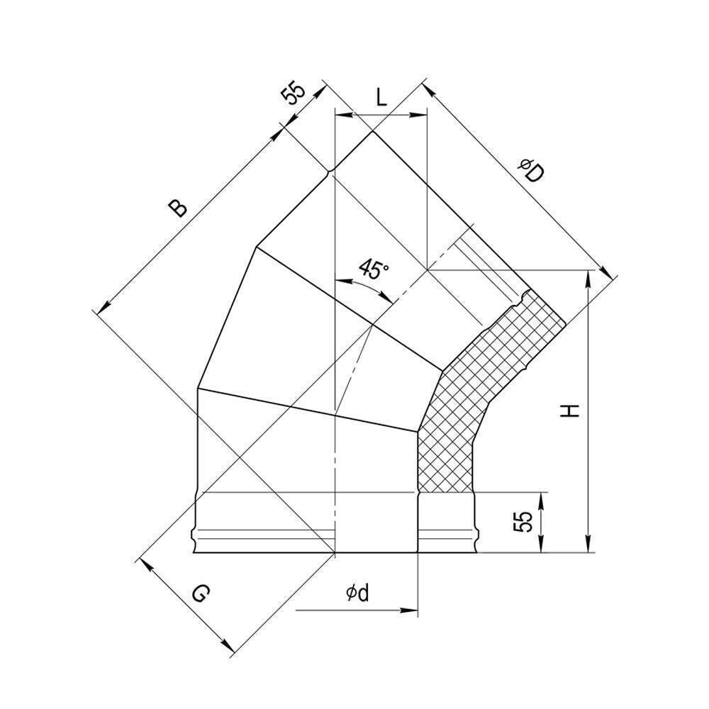 Двустенные дымоходы Ferrum AISI 430/0,8 + 430/0,5 Сэндвич-колено 135°