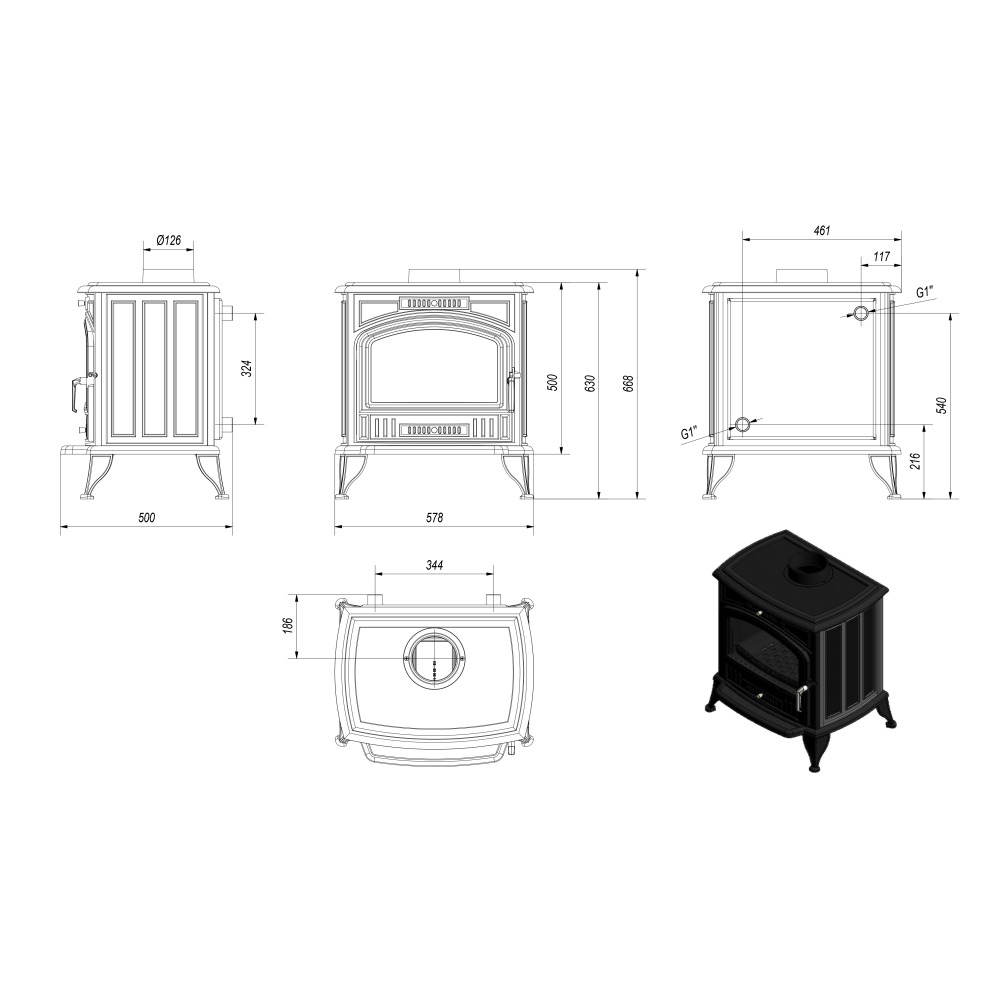 Печь-камин Kratki Koza K6 (с водяным контуром)