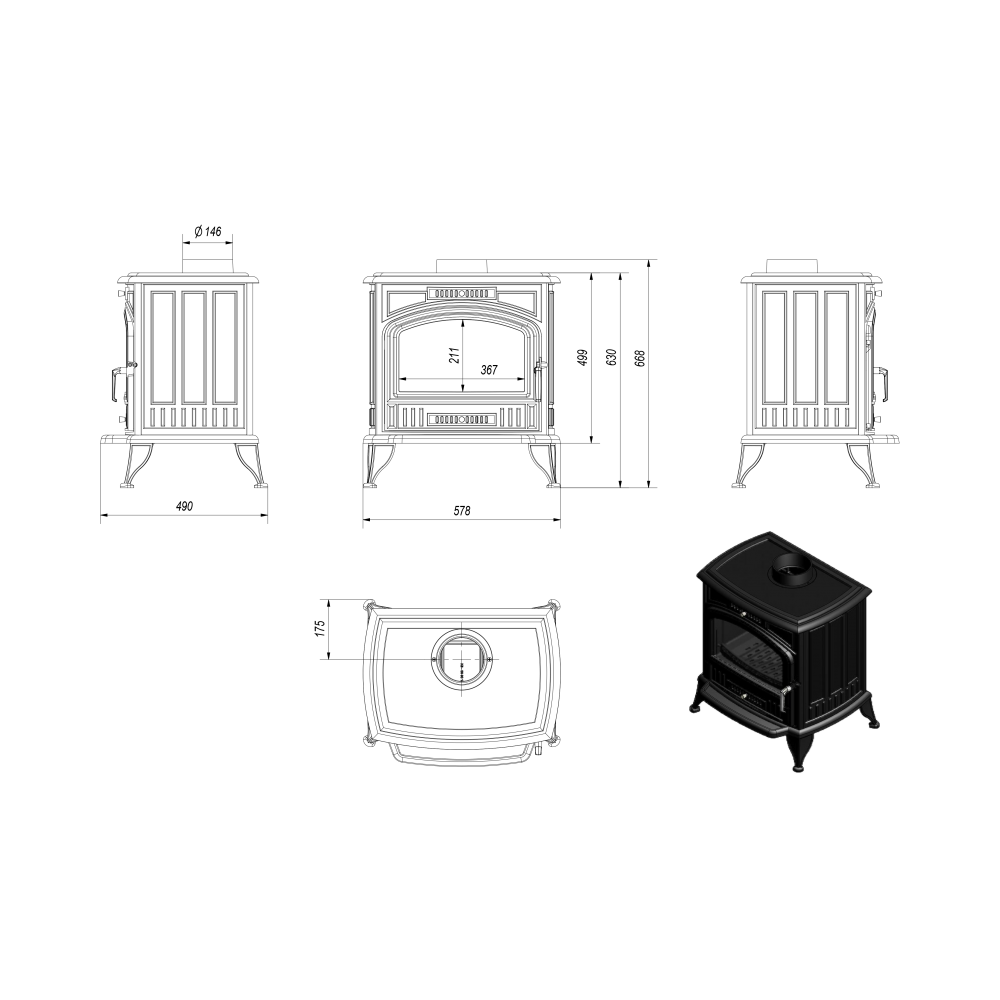 Печь-камин Kratki Koza K6 TF (с турбофеном)