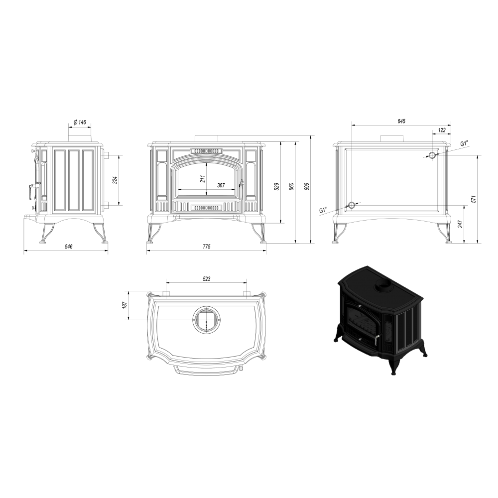 Печь-камин Kratki Koza K9 W (с водяным контуром)