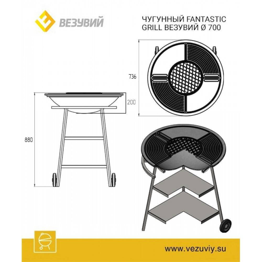 Подставка для Везувий Fantastic Grill Ø 700 изготовлена из стального профиля квадратного сечения. Она чётко рассчитана для этой модели гриля.