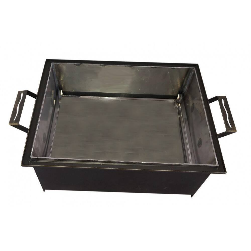 Коптильня Березка Триумф с крышкой купольного типа предотвращающая стекание конденсата на продукт копчения, оснащена двухъярусной решеткой для продуктов, а также имеет поддон для стекающего жира.